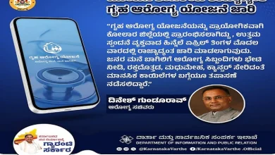 ಬೆಂಗಳೂರ : ಗೃಹ ಆರೋಗ್ಯ ಯೋಜನೆಯನ್ನು ಪ್ರಾಯೋಗಿಕವಾಗಿ ಕೋಲಾರ ಜಿಲ್ಲೆಯಲ್ಲಿ ಪ್ರಾರಂಭಿಸಲಾಗಿದ್ದು, ಉತ್ತಮ ಸ್ಪಂದನೆ ವ್ಯಕ್ತವಾದ ಹಿನ್ನೆಲೆ ಏಪ್ರಿಲ್ ತಿಂಗಳ ಮೊದಲ ವಾರದಲ್ಲಿ ರಾಜ್ಯಾದ್ಯಂತ ಜಾರಿ ಮಾಡಲಾಗುವುದು.…