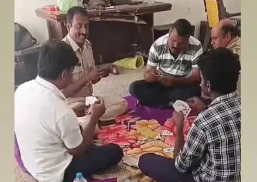 ಸಾರ್ವಜನಿಕವಾಗಿ ಜನರು ಇಸ್ಪೀಟ್ ಆಡಿದರೆ ದಾಳಿ ನಡೆಸಿ ಕೇಸ್ ಹಾಕಬೇಕಾಗಿದ್ದ ಪೊಲೀಸರೇ ಪೊಲೀಸ್ ಠಾಣೆ ಒಳಗೆ ಇಸ್ಪೀಟ್ ಆಡುತ್ತಾ ಕುಳಿತ ಘಟನೆ ಕಲಬುರಗಿ ಜಿಲ್ಲೆಯ ವಾಡಿ ಪೊಲೀಸ್ ಠಾಣೆಯಲ್ಲಿ ನಡೆದಿದೆ.