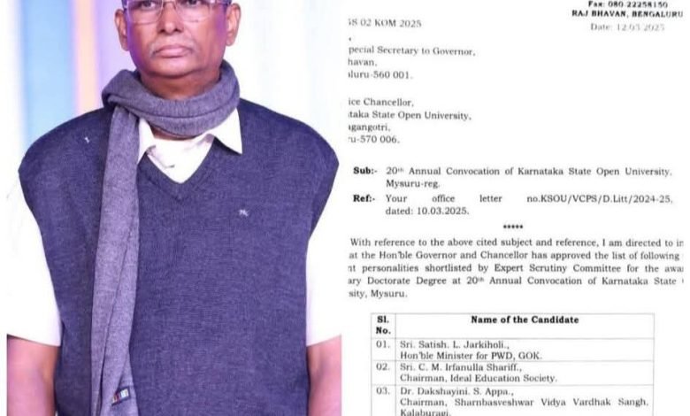 ಈ ಮೂವರು ಗಣ್ಯರಿಗೆ ಕರ್ನಾಟಕ ರಾಜ್ಯ ಮುಕ್ತ ವಿಶ್ವವಿದ್ಯಾಲಯ 20ನೇ ವಾರ್ಷಿಕ ಘಟಿಕೋತ್ಸವದಲ್ಲಿ ಗೌರವ ಡಾಕ್ಟರೇಟ್ ಪದವಿ ನೀಡಲು ಕರ್ನಾಟಕ ರಾಜ್ಯದ ರಾಜ್ಯಪಾಲರು ಹಾಗೂ ವಿಶ್ವವಿದ್ಯಾಲಯದ ಕುಲಪತಿಗಳಾದ ಥಾವರ್ ಚಂದ್ ಗೆಹಲೋಥ್ ಅವರು ಒಪ್ಪಿಗೆ ನೀಡಿದ್ದು, ರಾಜ್ಯಪಾಲರ ಅಧೀನ ಕಾರ್ಯದರ್ಶಿ ಬಿ.ಬಿ. ಪ್ರಶಾಂತ್ ಕುಮಾರ್ ಅವರು ಮೈಸೂರಿನ