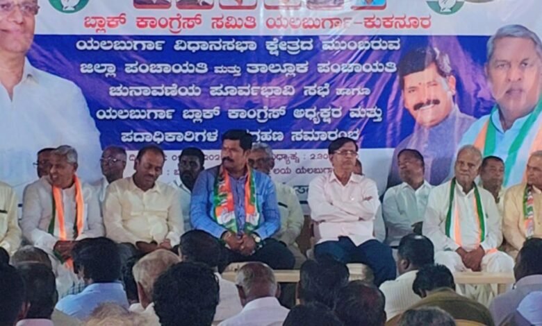 ಕೊಪ್ಪಳ ಜಿಲ್ಲೆ, ಯಲಬುರ್ಗಾ ತಾಲೂಕು ಮತ್ತು ಕುಕನೂರು ಜಿಲ್ಲಾ ಪಂಚಾಯತ್ ಮತ್ತು ತಾಲೂಕು ಪಂಚಾಯಿತಿ ಪೂರ್ವಭಾವಿ ಸಭೆಯನ್ನು ಹಮ್ಮಿಕೊಳ್ಳಲಾಗಿತ್ತು ಈ ಕಾರ್ಯಕ್ರಮದಲ್ಲಿ ಜಿಲ್ಲಾ ಬ್ಲಾಕ್ ಕಾಂಗ್ರೆಸ್ ಅಧ್ಯಕ್ಷರಾದ ಅಂಬ್ರೇಗೌಡ ಬಯ್ಯಾಪುರ ಲೋಕಸಭೆ ಸದಸ್ಯರಾದ ರಾಜಶೇಖರ್ ಹಿಟ್ನಾಳ್ ಅವರು ಮತ್ತು ರಾಜ್ಯ ಸಚಿವರಾದ ಶಿವರಾಜ್ ತಂಗಡಿಗೆ ನೂತನವಾಗಿ ಆಯ್ಕೆಯಾದ ಯಲಬುರ್ಗಾ ಬ್ಲಾಕ್ ಕಾಂಗ್ರೆಸ್ ಅಧ್ಯಕ್ಷರಾದ ಕರಬಸಪ್ಪ ನಡುಗುಂದಿ ನೂತನ ಉಪಾಧ್ಯಕ್ಷರಾದ ಸಂಗಣ್ಣ ತೆಂಗಿನಕಾಯಿಯವರು ನೂತನ ಪ್ರಧಾನ ಕಾರ್ಯದರ್ಶಿಗಳಾದ ಶರಣಪ್ಪ ಗಾಂಜಿ ಕಾರ್ಯದರ್ಶಿಯಾದ ಆನಂದ ಉಳ್ಳಾಗಡ್ಡಿ ಮತ್ತು ರೇವಣಪ್ಪ ಸಂಘಟಿ ಇವರುಗಳಿಗೆ ಜಿಲ್ಲಾಧ್ಯಕ್ಷರು ಸಚಿವರು ಶಾಸಕರು ಇನ್ನು ಅನೇಕ ಗಣ್ಯ ವ್ಯಕ್ತಿಗಳು ಸೇರಿ ವಿವರಗಳಿಗೆ ನೂತನ ಪದಾರ್ಥಗಳಿಗೆ ಸನ್ಮಾನ ಮಾಡಲಾಯಿತು.