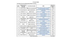 ಕೋಮು ಉದ್ವಿಗ್ನತೆಯನ್ನು ಪ್ರಚೋದಿಸುವ ಮತ್ತು ಭಾರತದ ಸಾರ್ವಭೌಮತ್ವ ಮತ್ತು ಭದ್ರತೆಯನ್ನು ದುರ್ಬಲಗೊಳಿಸುವ ಗುರಿಯನ್ನು ಹೊಂದಿರುವ ಪ್ರಚೋದನಕಾರಿ, ಸುಳ್ಳು ಸುದ್ದಿಗಳನ್ನು ಹರಡಿದ ಹಿನ್ನೆಲೆಯಲ್ಲಿ ಕೇಂದ್ರ ಸರ್ಕಾರ ಪಾಕಿಸ್ತಾನದ ಪ್ರಮುಖ ಸುದ್ದಿ ಸಂಸ್ಥೆಗಳು ಮತ್ತು ಮಾಜಿ ಕ್ರಿಕೆಟಿಗ ಶೋಯೆಬ್ ಅಖ್ತರ್ ಸೇರಿದಂತೆ 16 ಪಾಕಿಸ್ತಾನಿ ಯೂಟ್ಯೂಬ್ ಚಾನೆಲ್ಗಳನ್ನು ನಿಷೇಧಿಸಿದೆ ಎಂದ ಮೂಲಗಳು ತಿಳಿಸಿವೆ.