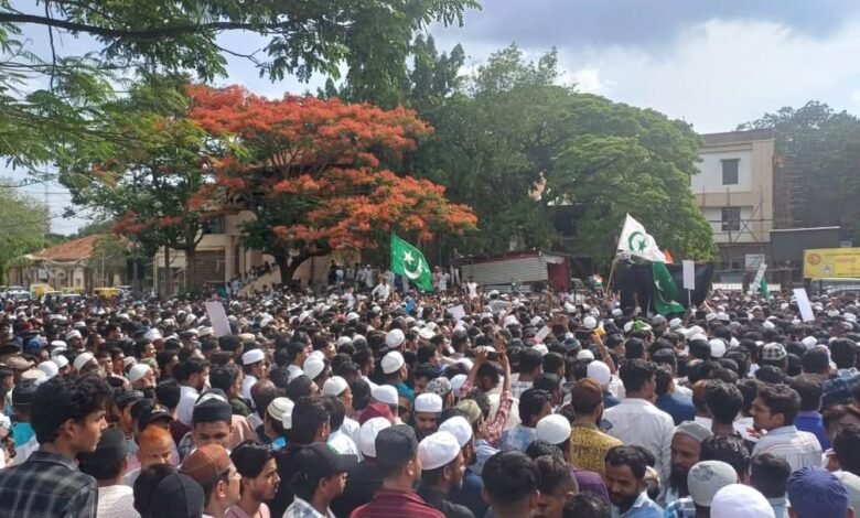 ಬೆಳಗಾವಿ: ಚನ್ನಮ್ಮ ವೃತ್ತದಲ್ಲಿ ಸೇರಿದ ಸಾವಿರಾರು ಮುಸ್ಲಿಂ ಬಾಂಧವರು- ಪ್ರತಿಭಟನೆ