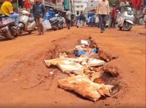 ಕಸಾಯಿ ಗಲ್ಲಿಯ ರಸ್ತೆಯಲ್ಲಿ ನಿರ್ಮಾಣಗೊಂಡ ಬೃಹತ್ ಗುಂಡಿ…
