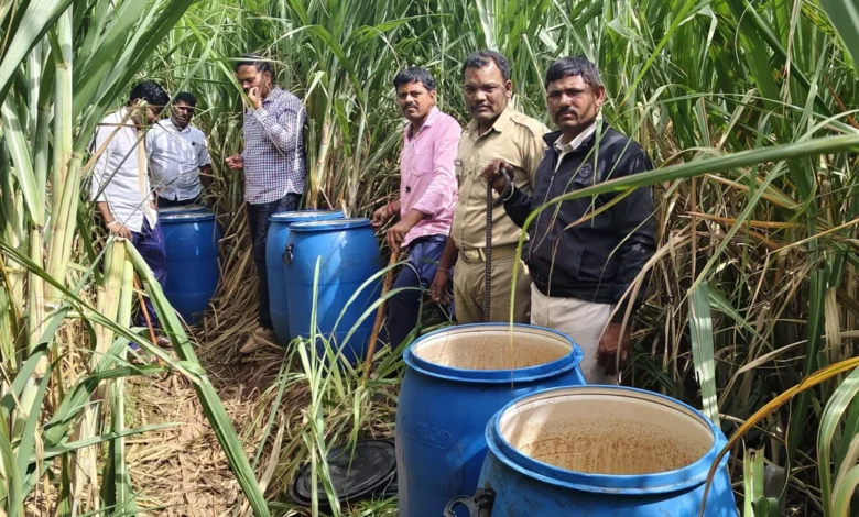 ಖದೀಮರು ರಾಜಾ ರೋಷವಾಗಿ ಕಳ್ಳ ಬಟ್ಟಿ ಸಾರಾಯಿ ದಂಧೆ ನಡೆಸುತ್ತಿದ್ದರ ಕುರಿತು ಖಚಿತ ಮಾಹಿತಿ ಮೇರೆಗೆ ಬಸವನ ಬಾಗೇವಾಡಿ ಅಬಕಾರಿ ಇನ್ಸ್ಪೆಕ್ಟರ್ ವಿಠ್ಠಲ್ ಜೀರಂಕಲಗಿ ನೇತೃತ್ವದಲ್ಲಿ ದಾಳಿ ನಡೆಸಿ ಮುಳವಾಡ ಎಲ್ ಟಿ-2 ಯಲ್ಲಿ ಕಬ್ಬಿನ ಹೊಲದಲ್ಲಿ ಸುಮಾರು 17 ಬ್ಯಾರಲ್ ತುಂಬಿದ ಕಳ್ಳ ಬಟ್ಟಿ ಸಾರಾಯಿ ತಯಾರಿಸುತ್ತಿದ್ದ ಬೆಲ್ಲದ ರಸವನ್ನು ನಾಶ ಪಡಿಸಲಾಯಿತು.