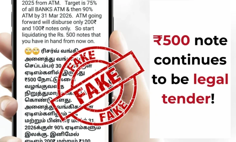 ಭಾರತೀಯ ರಿಸರ್ವ್ ಬ್ಯಾಂಕ್ (ಆರ್ಬಿಐ) ಮಾರ್ಚ್ 2026 ರ ವೇಳೆಗೆ 500 ರೂ. ನೋಟುಗಳ ಚಲಾವಣೆಯನ್ನು ನಿಲ್ಲಿಸಲು ಸಿದ್ಧತೆ ನಡೆಸುತ್ತಿದೆ ಎಂದು ಹೇಳುವ ವೈರಲ್ ಆಗಿರುವ ವಾಟ್ಸಾಪ್ ಸಂದೇಶವು ಸಾರ್ವಜನಿಕರನ್ನು ಗೊಂದಲಕ್ಕೀಡು ಮಾಡಿದೆ.