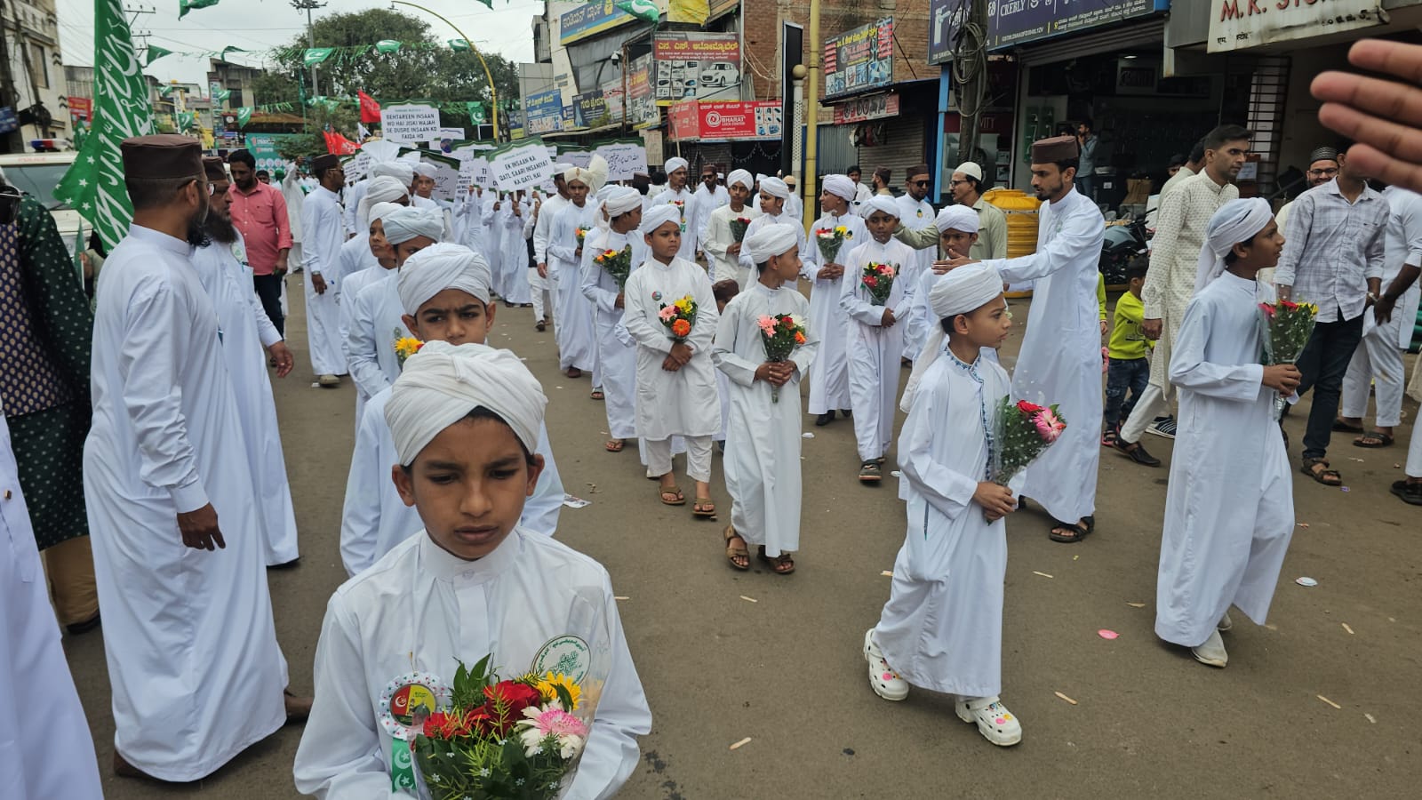 ಈ ಸಂದರ್ಭದಲ್ಲಿ ಮೌಲಾನಾಗಳು, ಮುಸ್ಲಿಂ ಸಮಾಜದ ಮುಖಂಡರು ಮತ್ತು ಸಮಾಜ ಬಾಂಧವರು ಭಾಗಿಯಾಗಿದ್ಧರು. ನಂತರ ಮೆರವಣಿಗೆಯೂ ಆರಂಭಗೊಂಡು, ಫೋರ್ಟ್ ರಸ್ತೆ, ಆರ್.ಟಿ.ಓ. ಸರ್ಕಲ್ ರಾಣಿ ಚನ್ನಮ್ಮ ವೃತ್ತ, ಕಾಲೇಜ್ ರೋಡ್ ಮಾರ್ಗವಾಗಿ ನಗರದ ಪ್ರಮುಖ ಮಾರ್ಗಗಳಲ್ಲಿ ಸಂಚರಿಸಿತು.