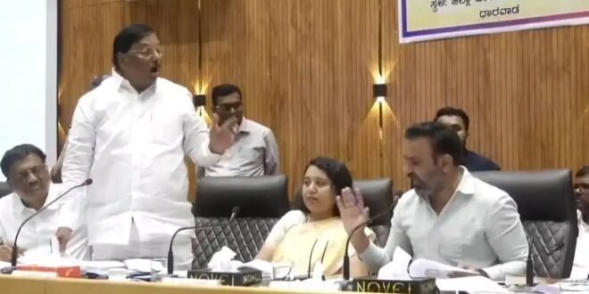 ಧಾರವಾಡ : ಧಾರವಾಡದ ಜಿಲ್ಲಾ ಪಂಚಾಯತ್ ಸಭಾಂಗಣದಲ್ಲಿ ಜಿಲ್ಲಾ ಉಸ್ತುವಾರಿ ಸಚಿವ ಸಂತೋಷ್ ಲಾಡ್ ನೇತೃತ್ವದಲ್ಲಿ ಮೂರನೇ ತ್ರೈಮಾಸಿಕ ಕೆಡಿಪಿ ಪ್ರಗತಿ ಪರಿಶೀಲನೆ ಸಭೆ ಇಂದು(ಸೋಮವಾರ) ನಡೆದಿದ್ದು, ಸಭೆಯಲ್ಲಿ ಸಮಾಜ ಕಲ್ಯಾಣ ಇಲಾಖೆಗೆ ಸಂಬಂಧಿಸಿದ ಪ್ರಗತಿ ಪರಿಶೀಲನೆ ವೇಳೆ ಸಚಿವ ಸಂತೋಷ್ ಲಾಡ್ ಹಾಗೂ ಎಂಎಲ್ಸಿ ಎಫ್.ಎಚ್.ಜಕ್ಕಪ್ಪನವರ ನಡುವೆ ತುಸು ಹೊತ್ತು ಏರು ದ್ವನಿಯಲ್ಲಿ ವಾಗ್ವಾದ ನಡೆದ ಪ್ರಸಂಗ ನಡೆಯಿತು.