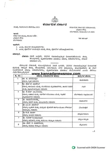 ಜನವರಿ.26, 2025ರಂದು ಯಾವ ಸಚಿವರು ಯಾವ ಜಿಲ್ಲೆಯಲ್ಲಿ ಧ್ವಜಾರೋಹಣ.?