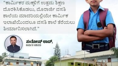 ರಾಜ್ಯದ ಕಾರ್ಮಿಕರ ಮಕ್ಕಳಿಗೆ ಗುಡ್ ನ್ಯೂಸ್: ವಸತಿ ಶಾಲೆ ತೆರೆಯಲು ಸರ್ಕಾರ ತೀರ್ಮಾನ: ಕಾರ್ಮಿಕ ಸಚಿವ ಸಂತೋಷ್ ಲಾಡ್ ಮಾಹಿತಿ